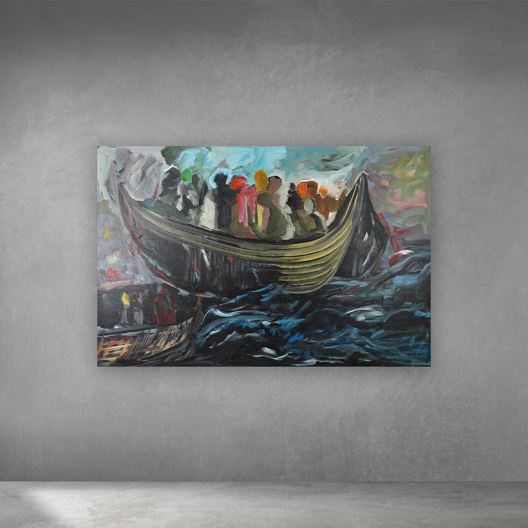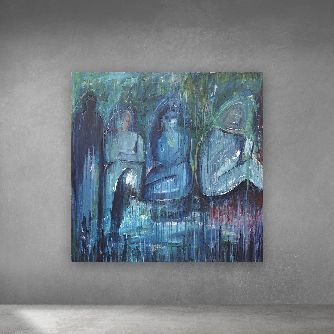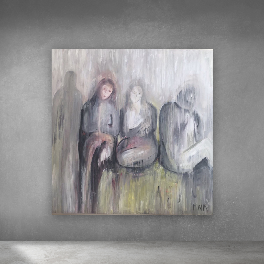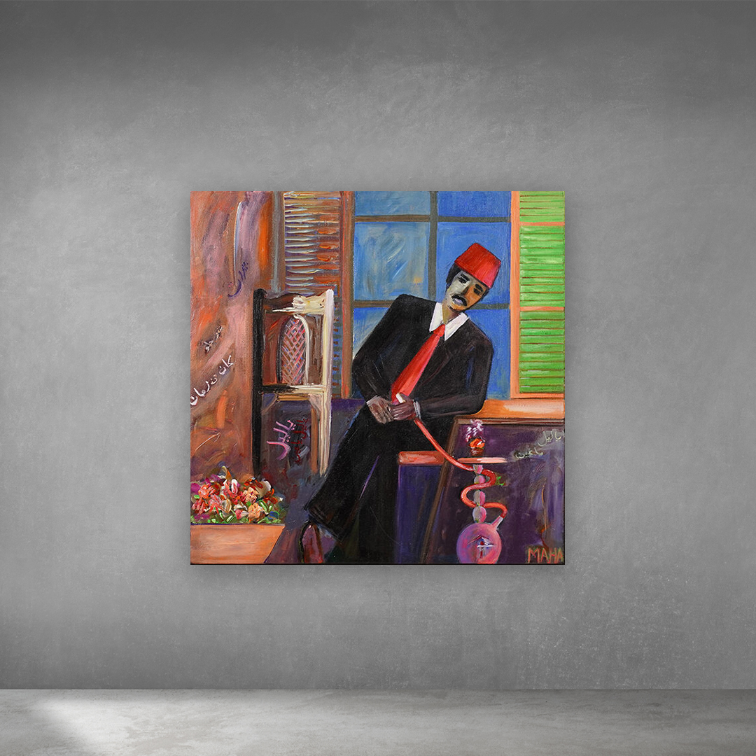 Different technics were used from subtle brush strokes to the use of knife paints to hands ,merging between the traditional and modern way of applying acrylic on canvas.